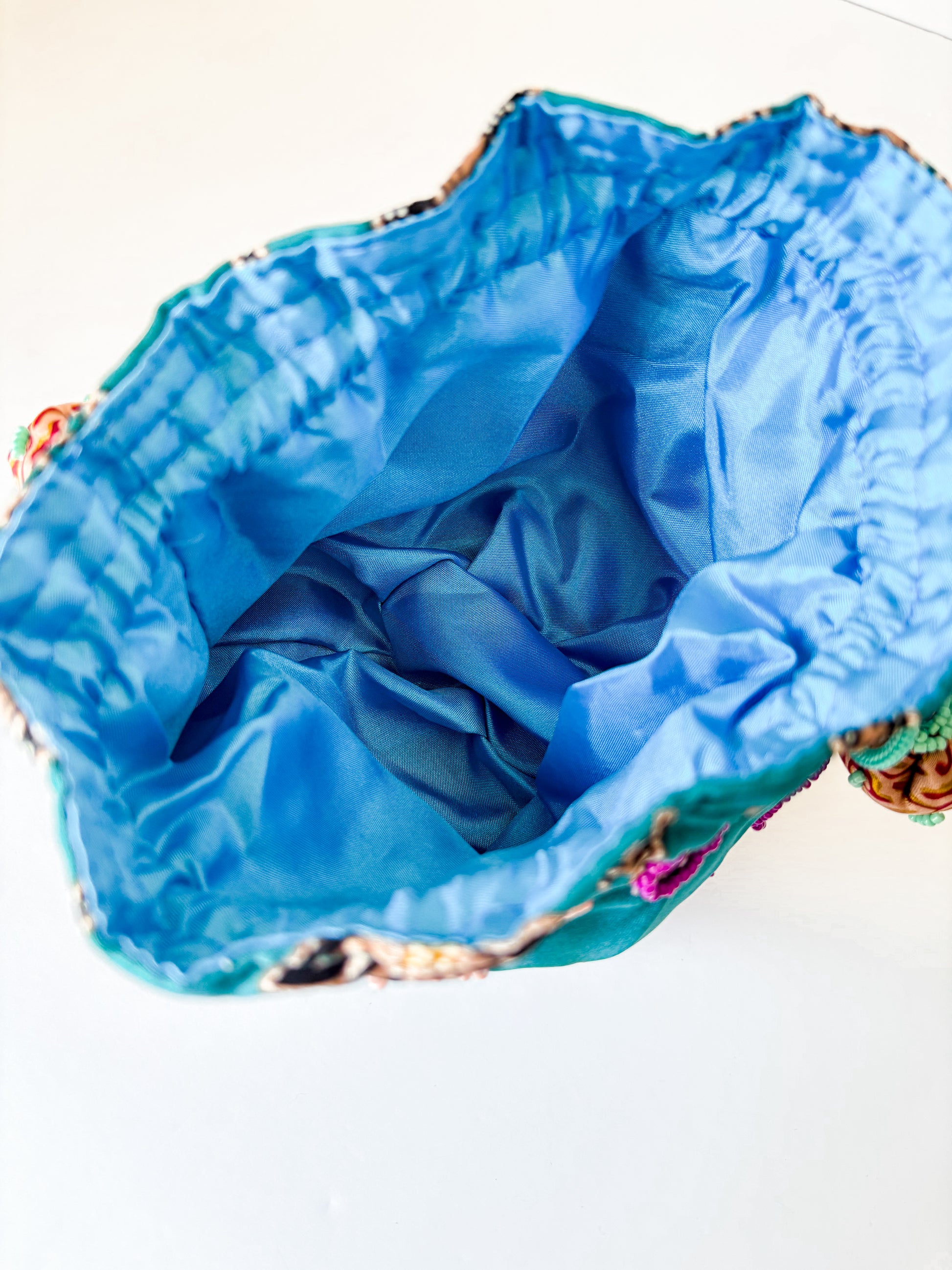 Bolsa de mão, bordada com missangas em tecidos com padrões tipicamente balineses