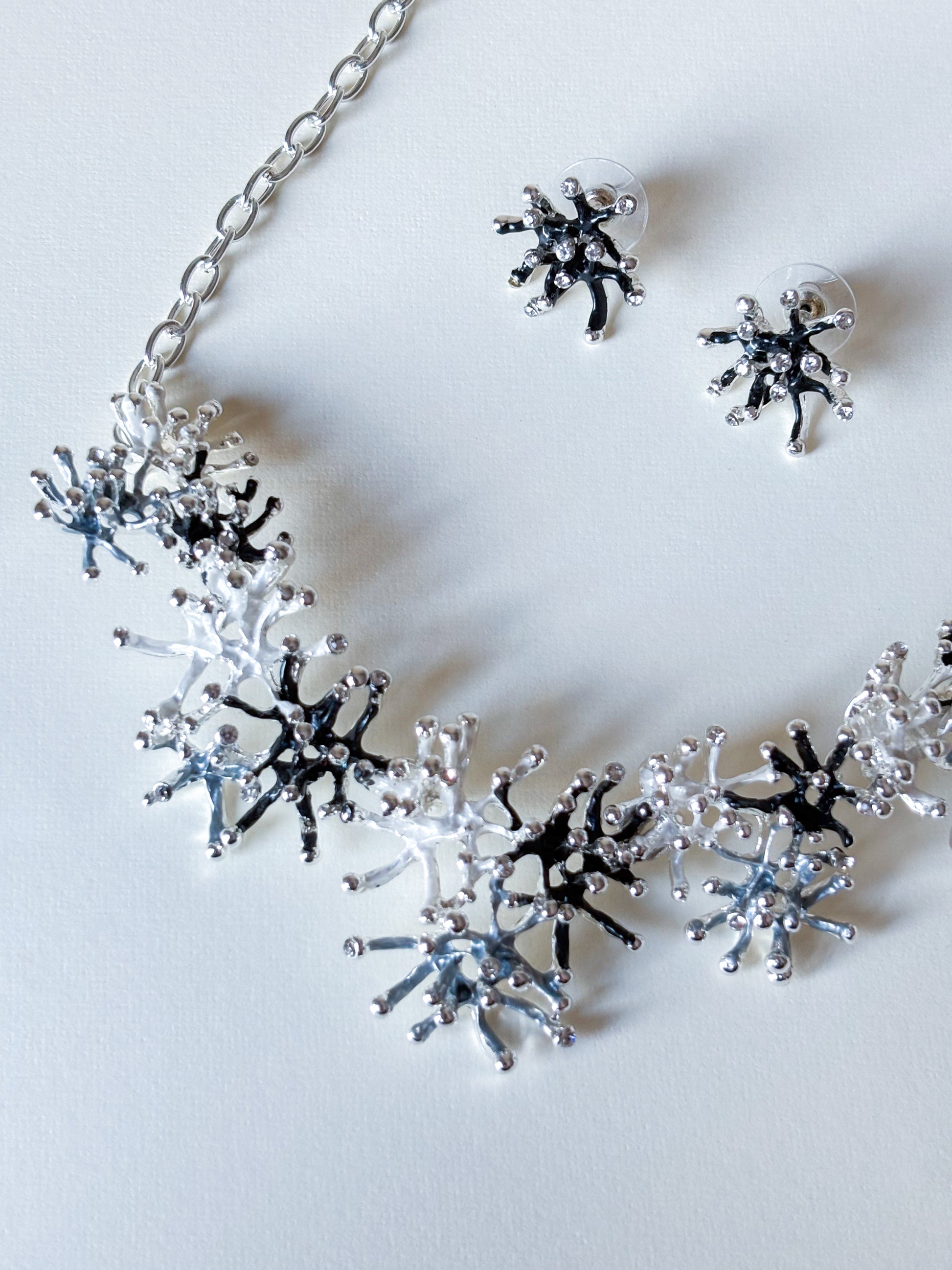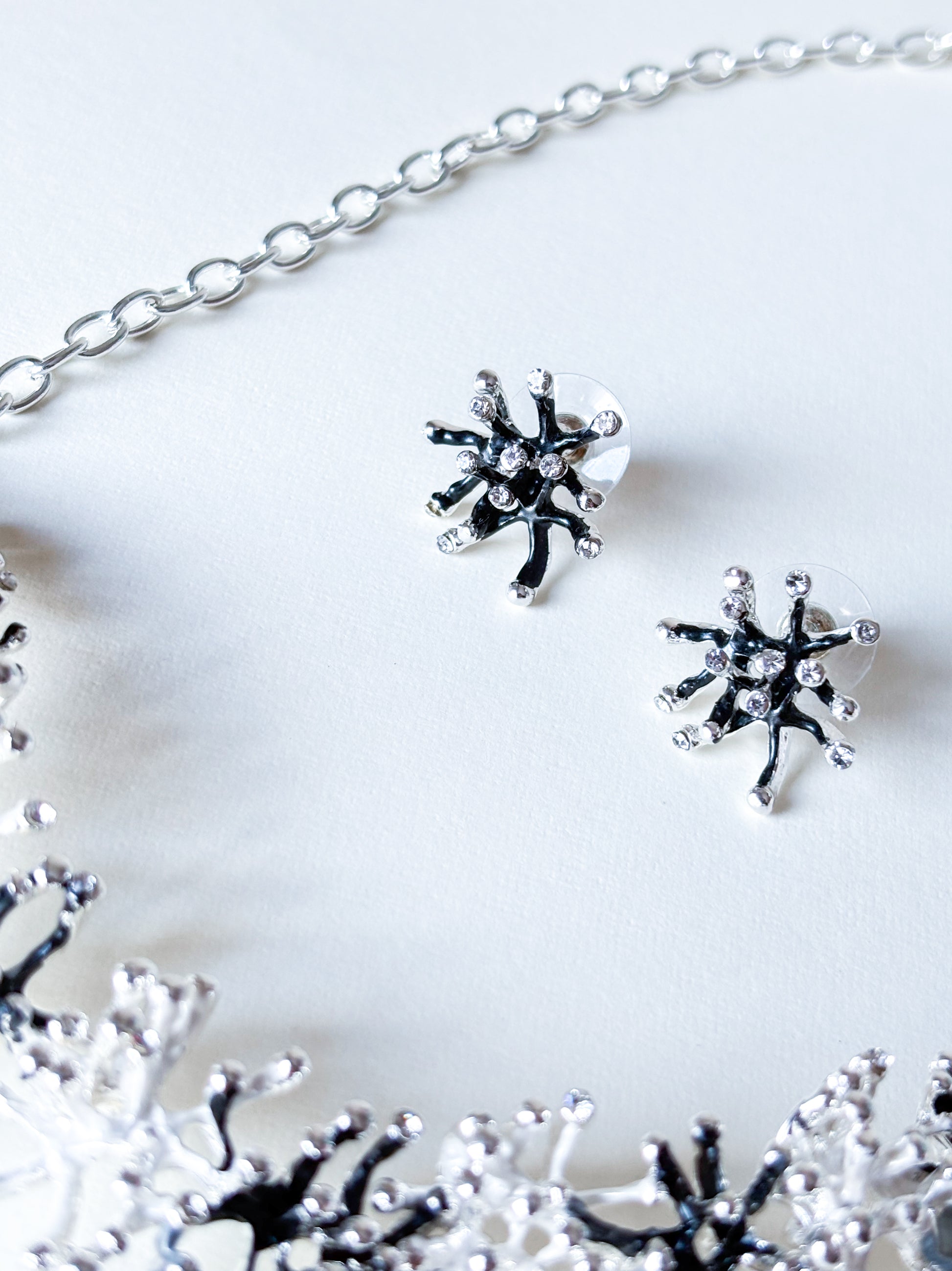Brincos de metal com formato de coral com pequenos cristais