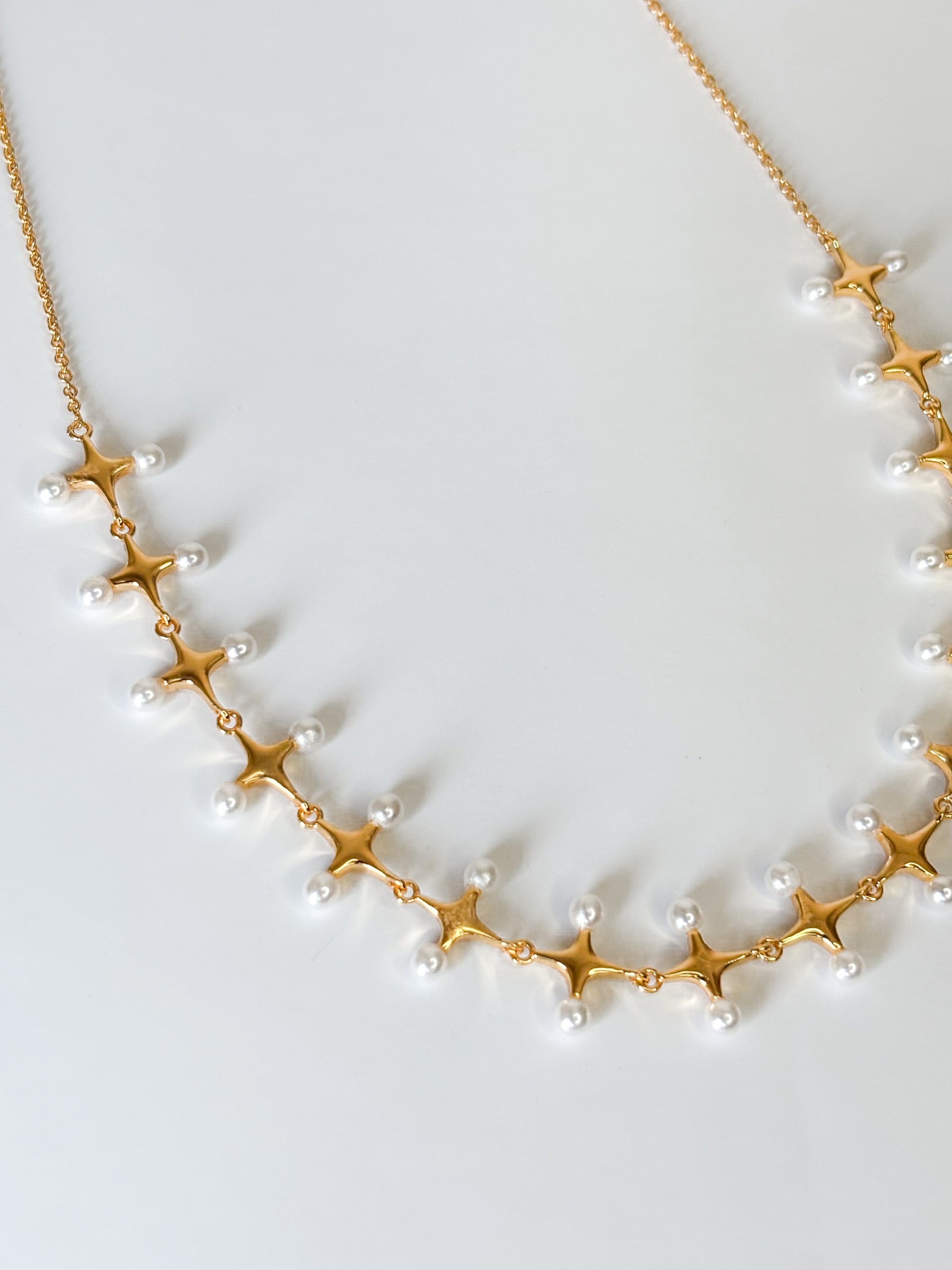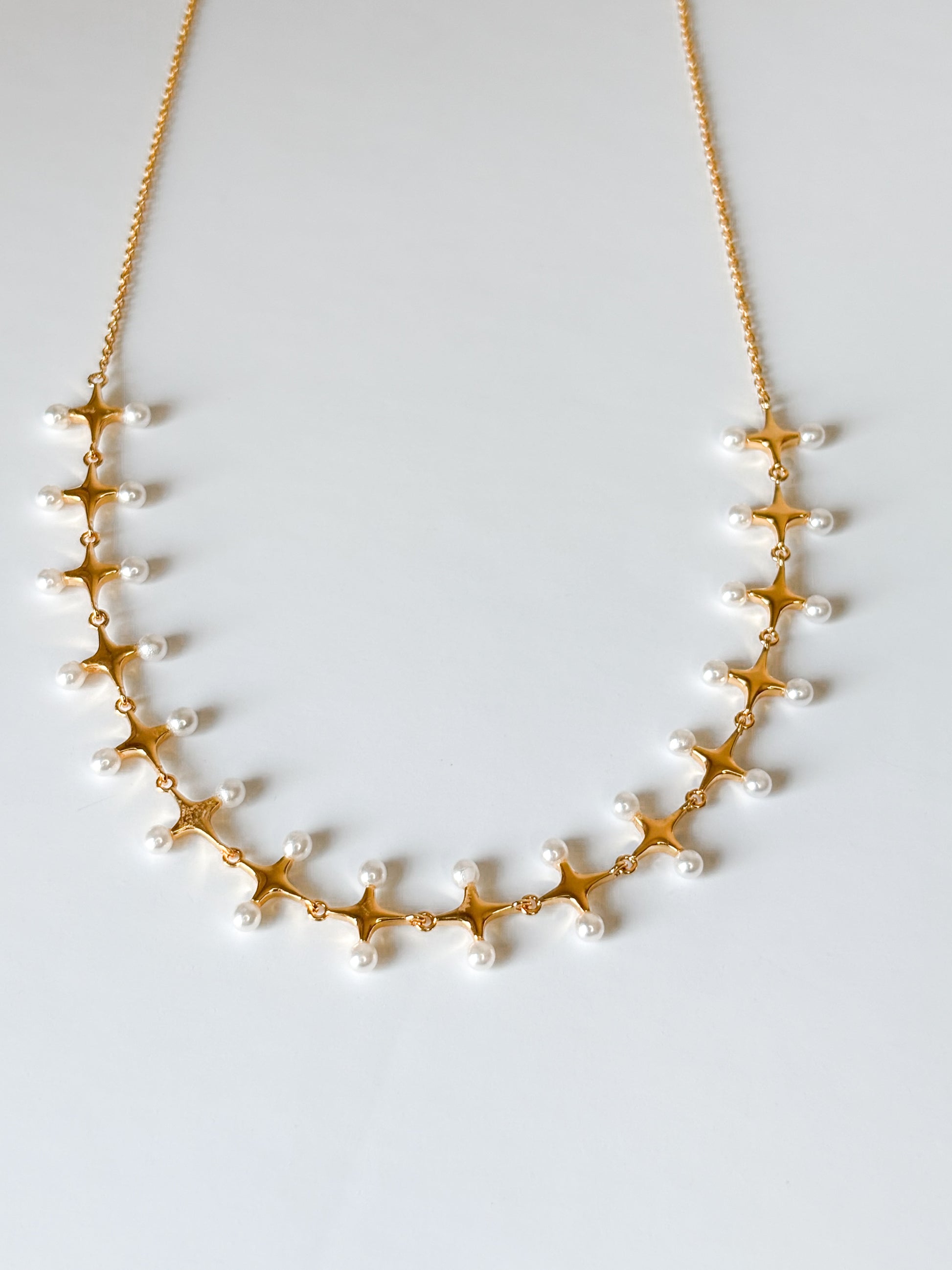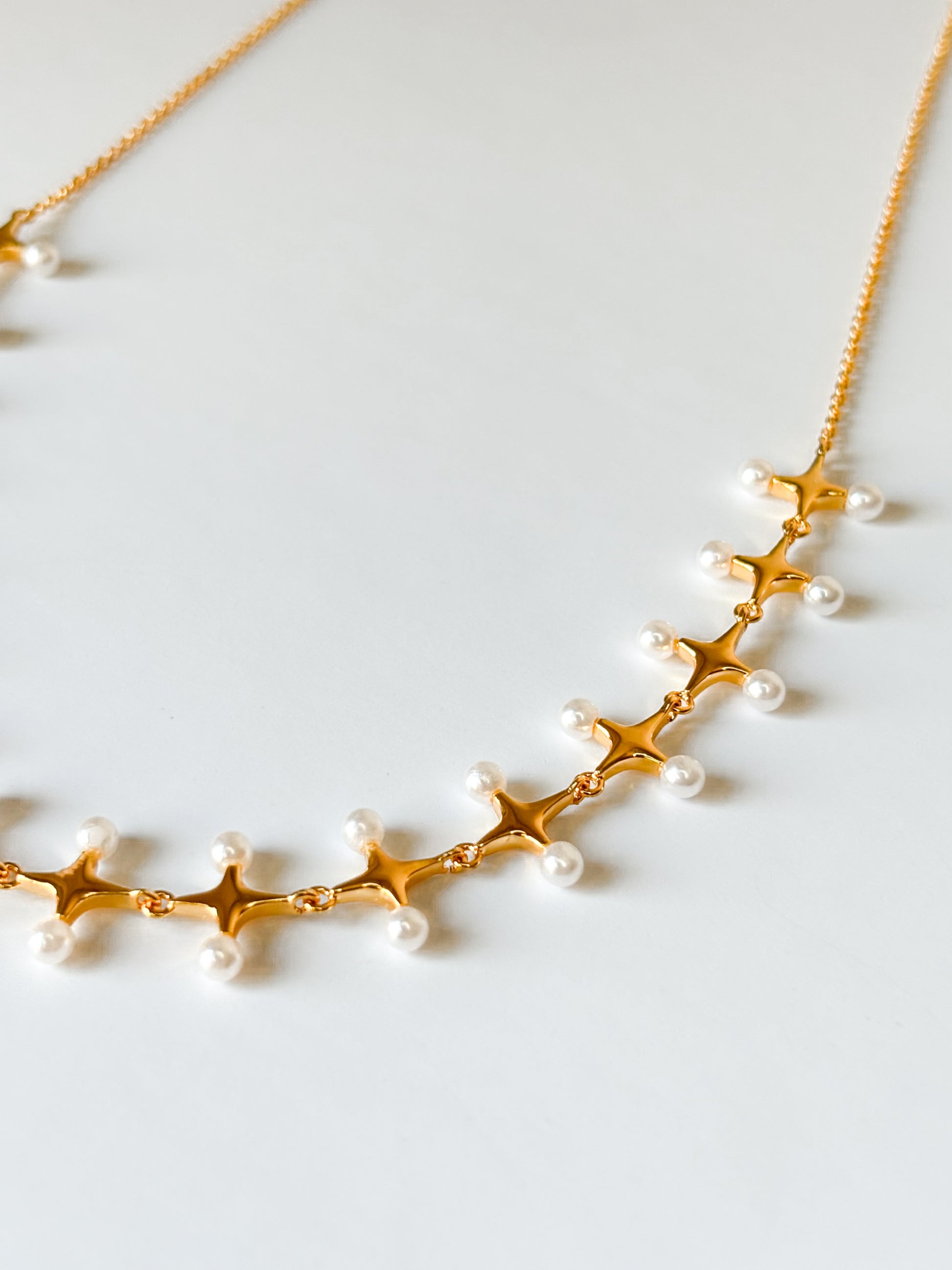 Colar com detalhe de pérolas pequenas e banho de ouro