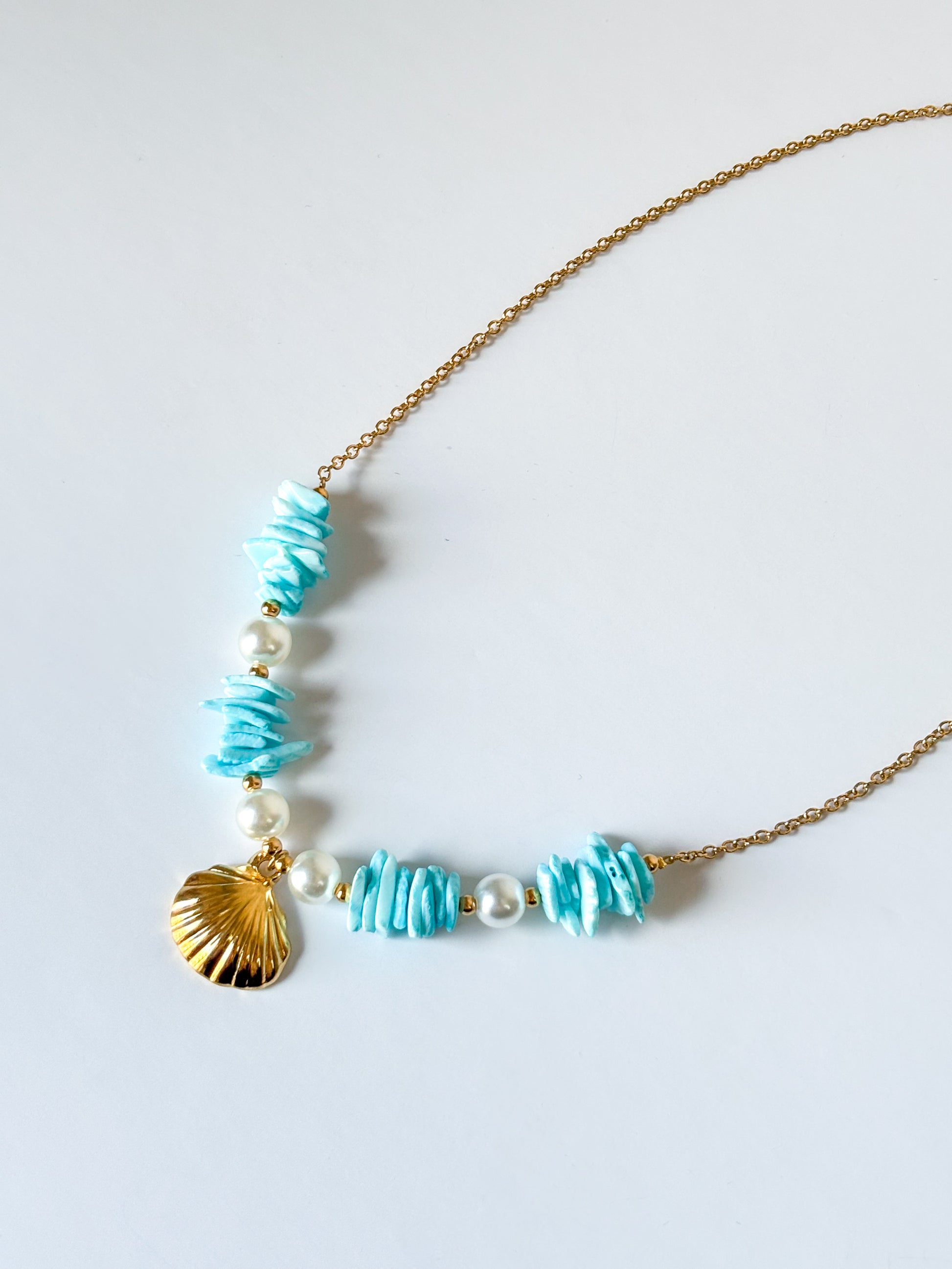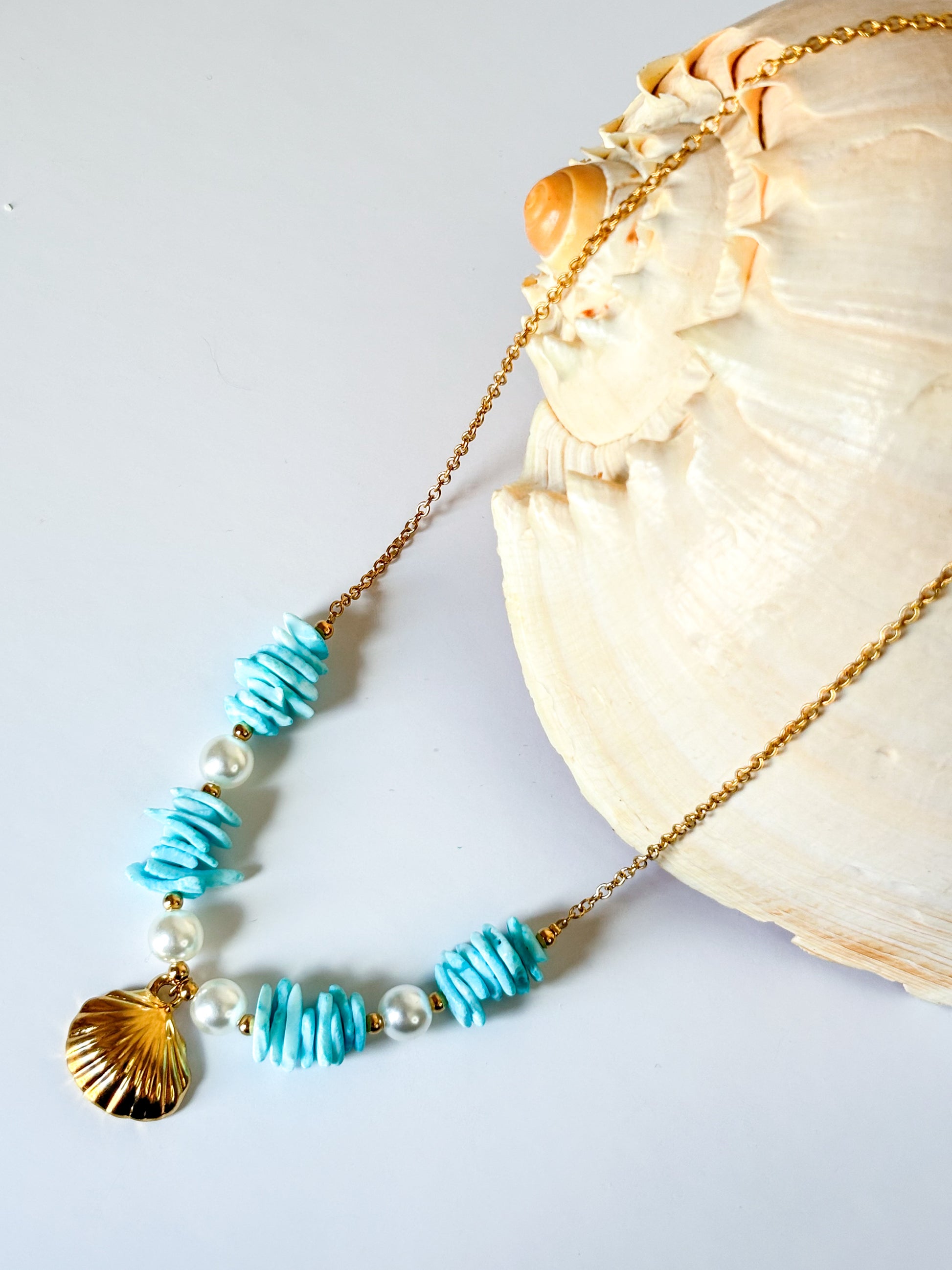 Colar de aço inoxidável com pedras e pendente de concha