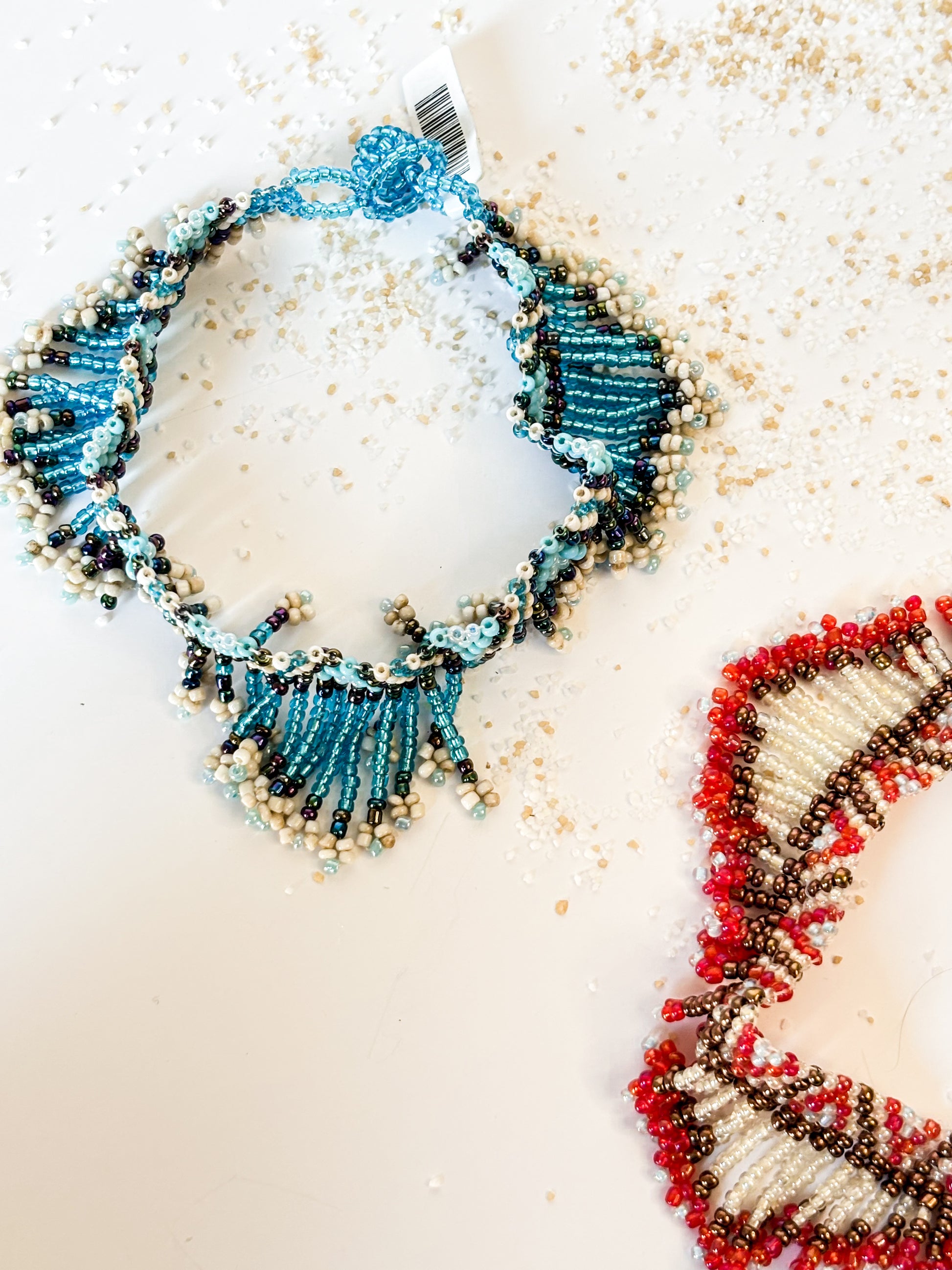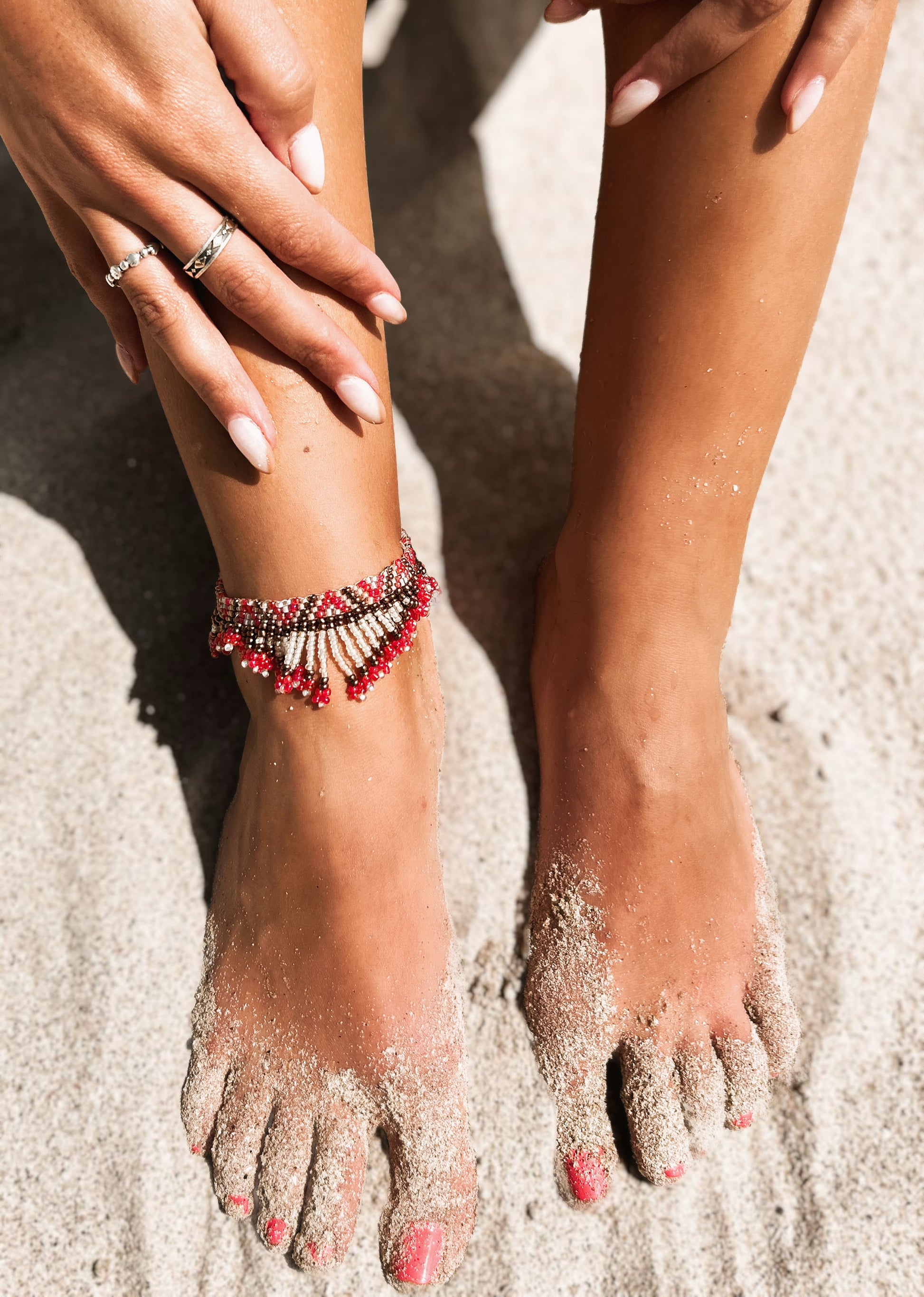 Pulseira de tornozelo toda trabalhada em missangas, marca de Bali